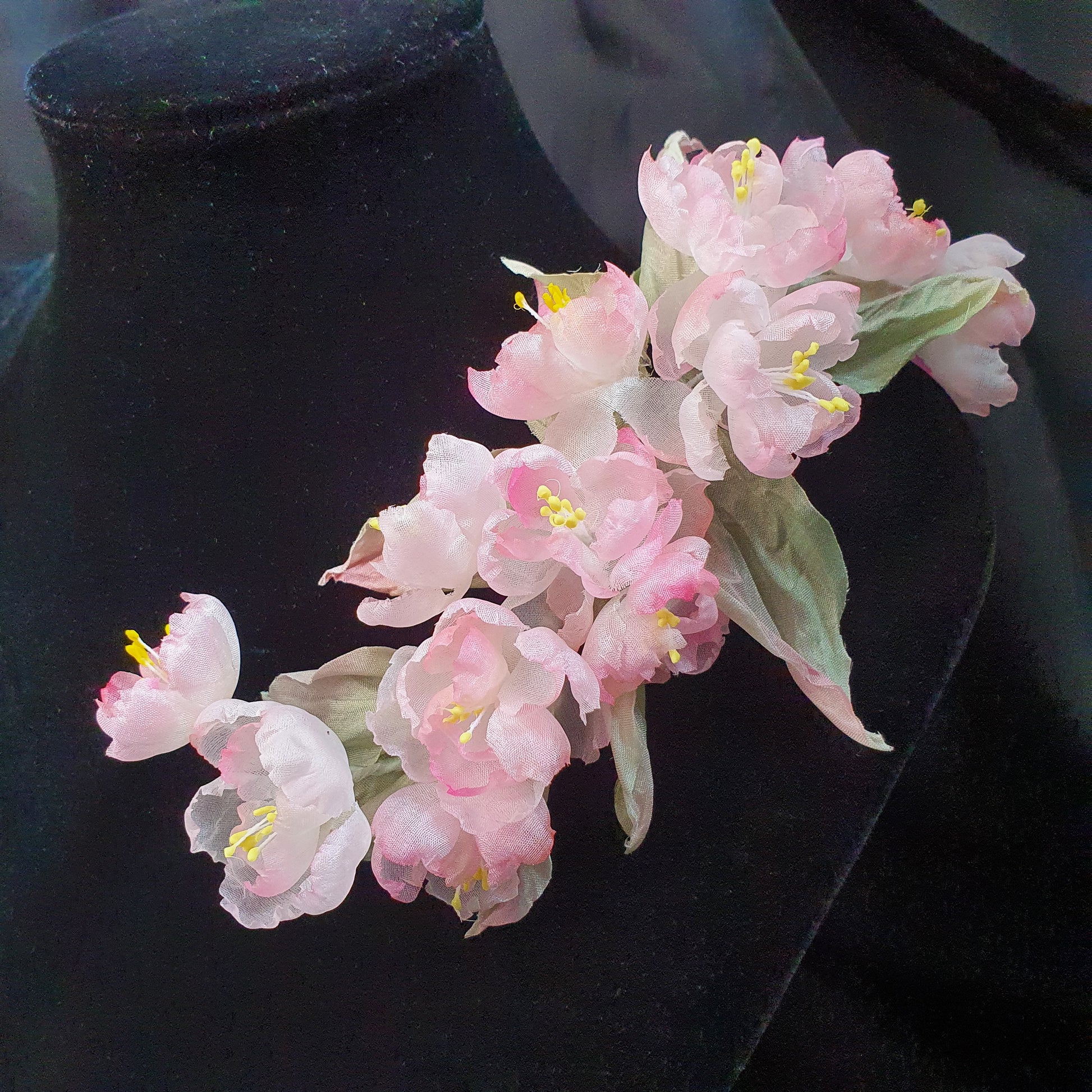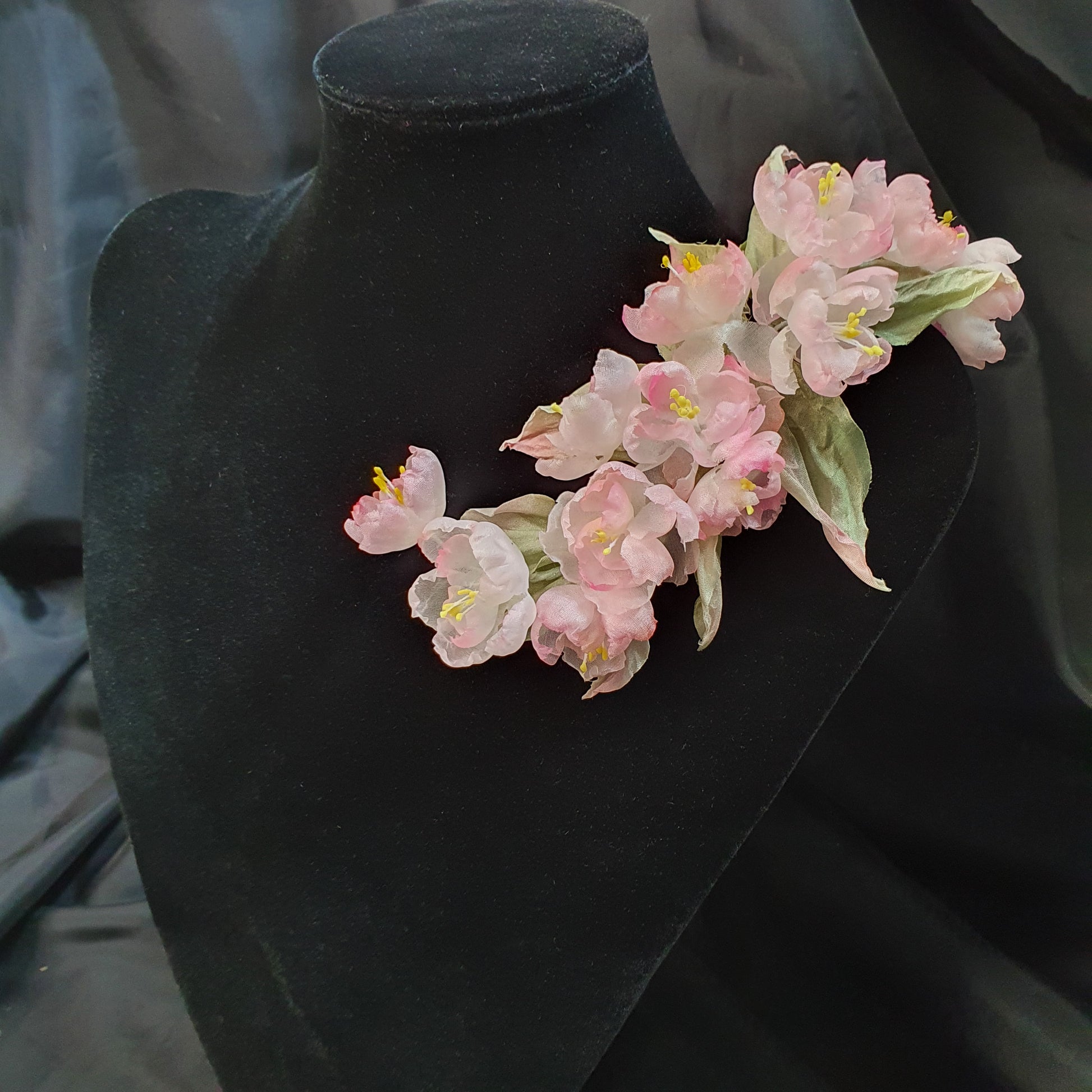 Blossom Éclat – Handmade Silk Apple Blossom Brooch & Headpiece