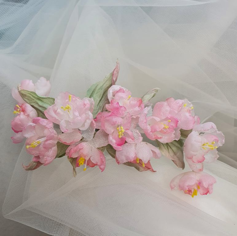 Blossom Éclat - Handcrafted Silk Apple Blossom Brooch & Headpiece