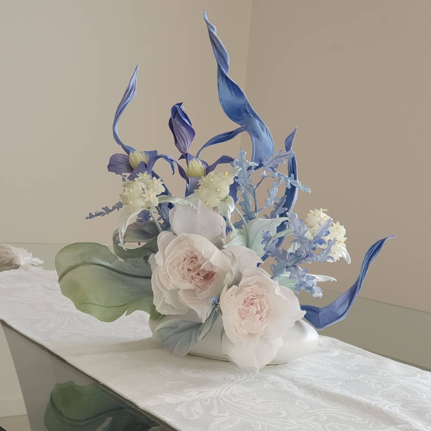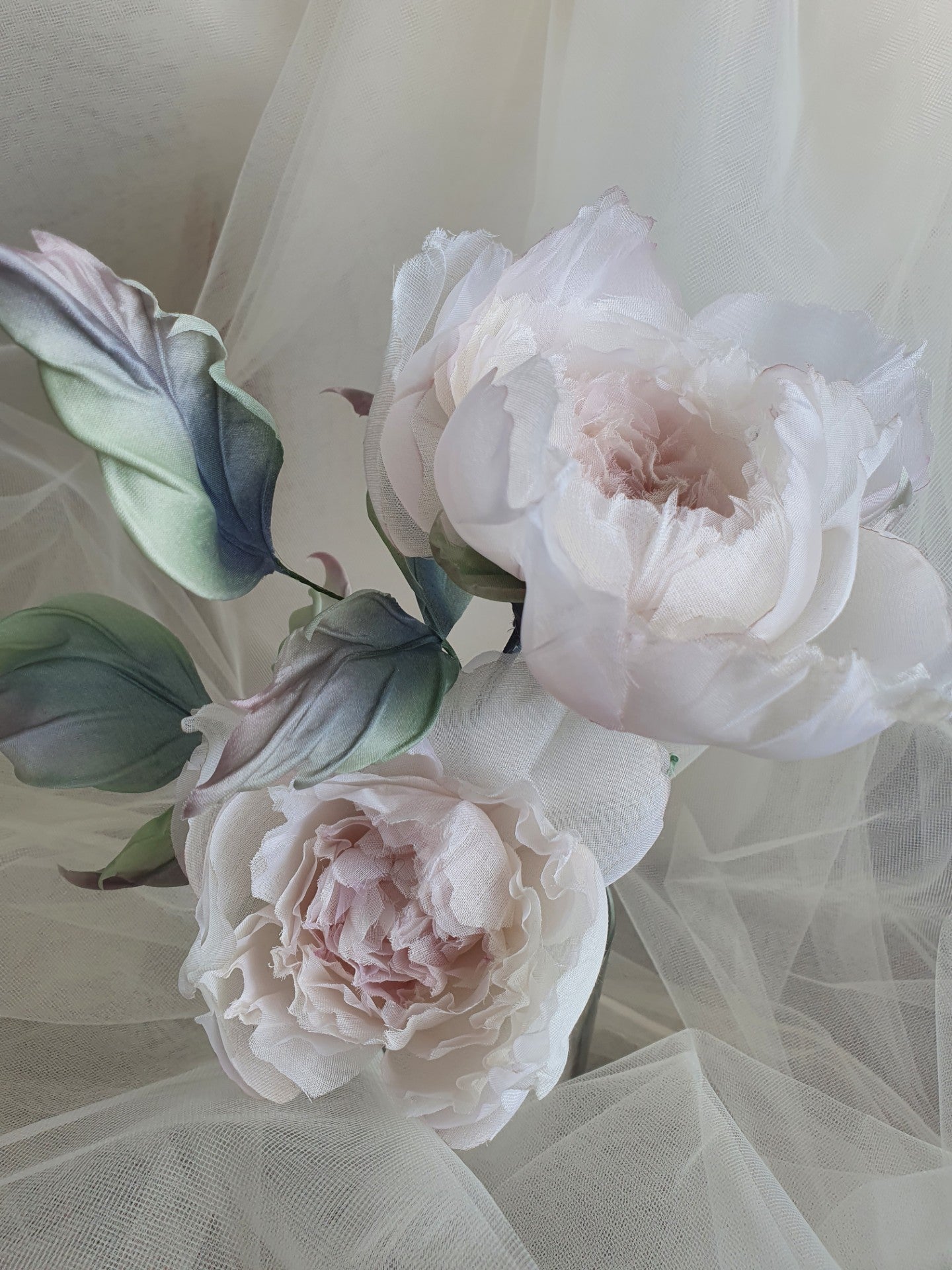 Pricing: Due to the time, expertise, and materials involved in crafting each piece, pricing starts from €300 and varies depending on the complexity and size of the bouquet. Larger, more intricate designs like the featured arrangement (2 large roses, 3 clematis, plus additional flowers and leaves) are priced at €350 - €500, reflecting the high level of detail and craftsmanship.