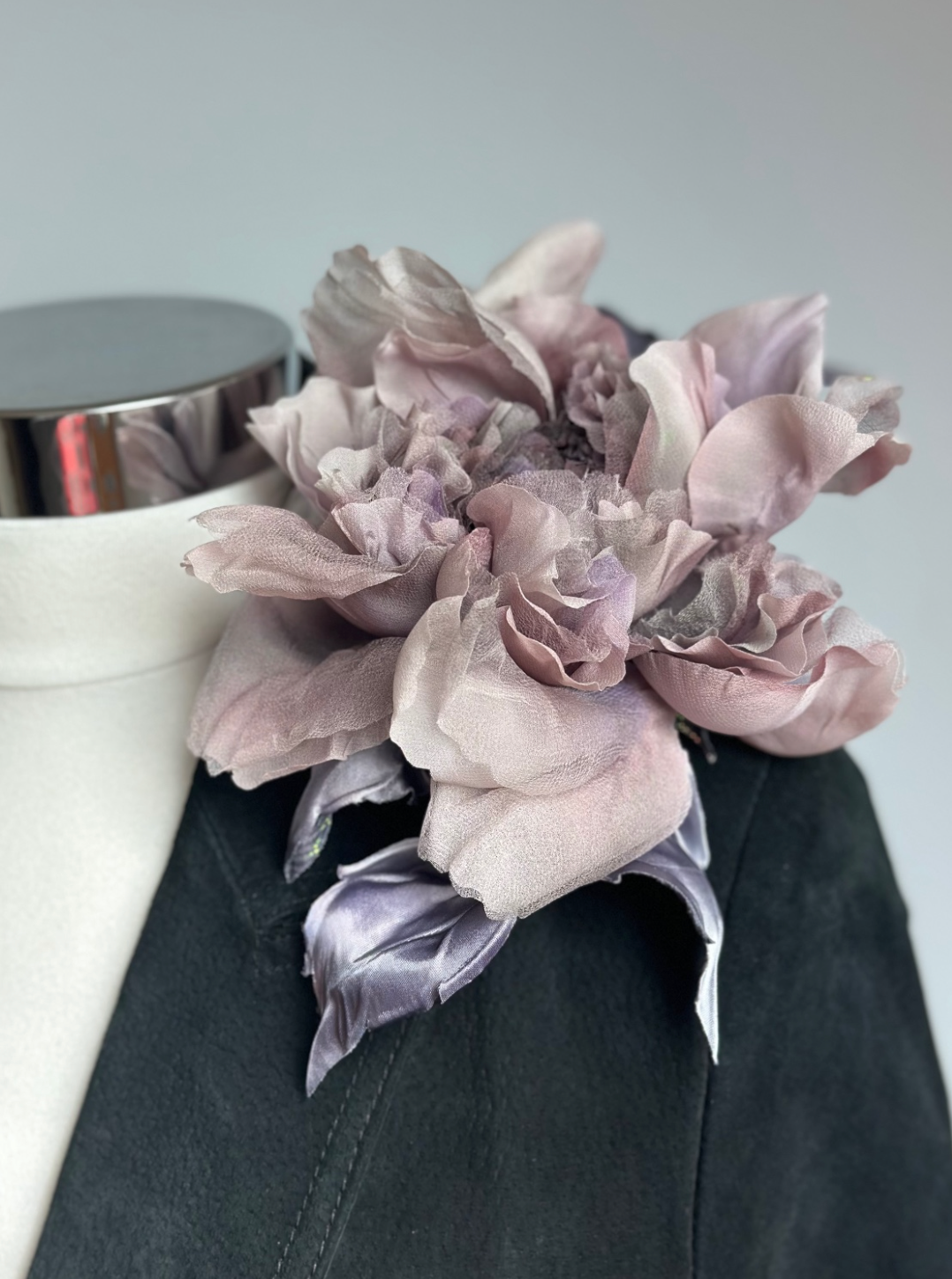 Elevate your wardrobe with the Blush Serenade, an exquisite blend of artistry, elegance, and natural beauty. Meticulously created from hand-painted natural silk, this brooch captures the essence of a blooming rose with its soft, ethereal tones. The delicate blush pink and subtle lavender accents evoke a romantic, dreamlike feel, making it the perfect accessory to add a touch of sophistication and grace to any outfit.