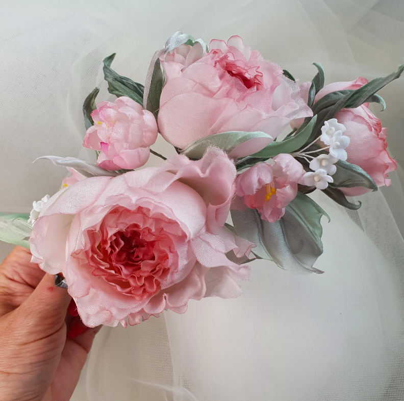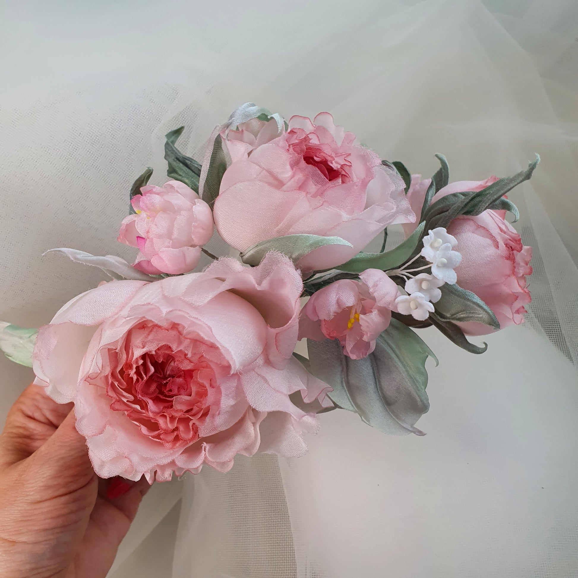 Silk Bloom Fantasy: Luxe Roses & Blossom Headpiece